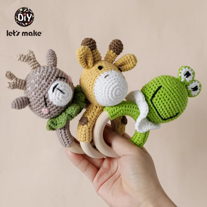 Baby Rattle For Newborns Crochet 1PC Baby Toys 0-12 Months Socks Educational Music Children’s Mobile Elk Frog Cow Let's Make